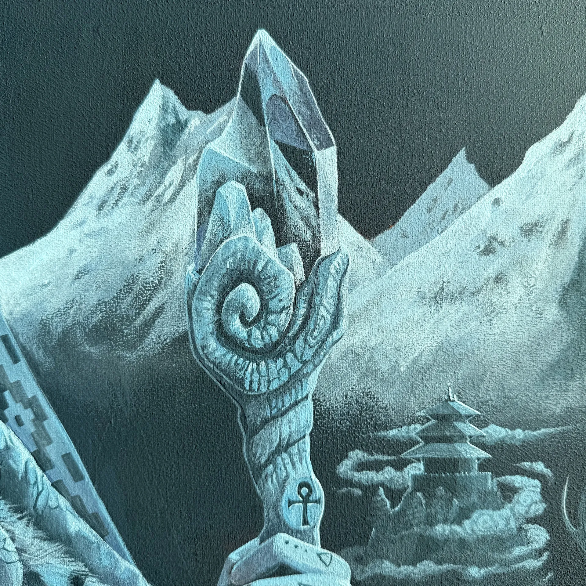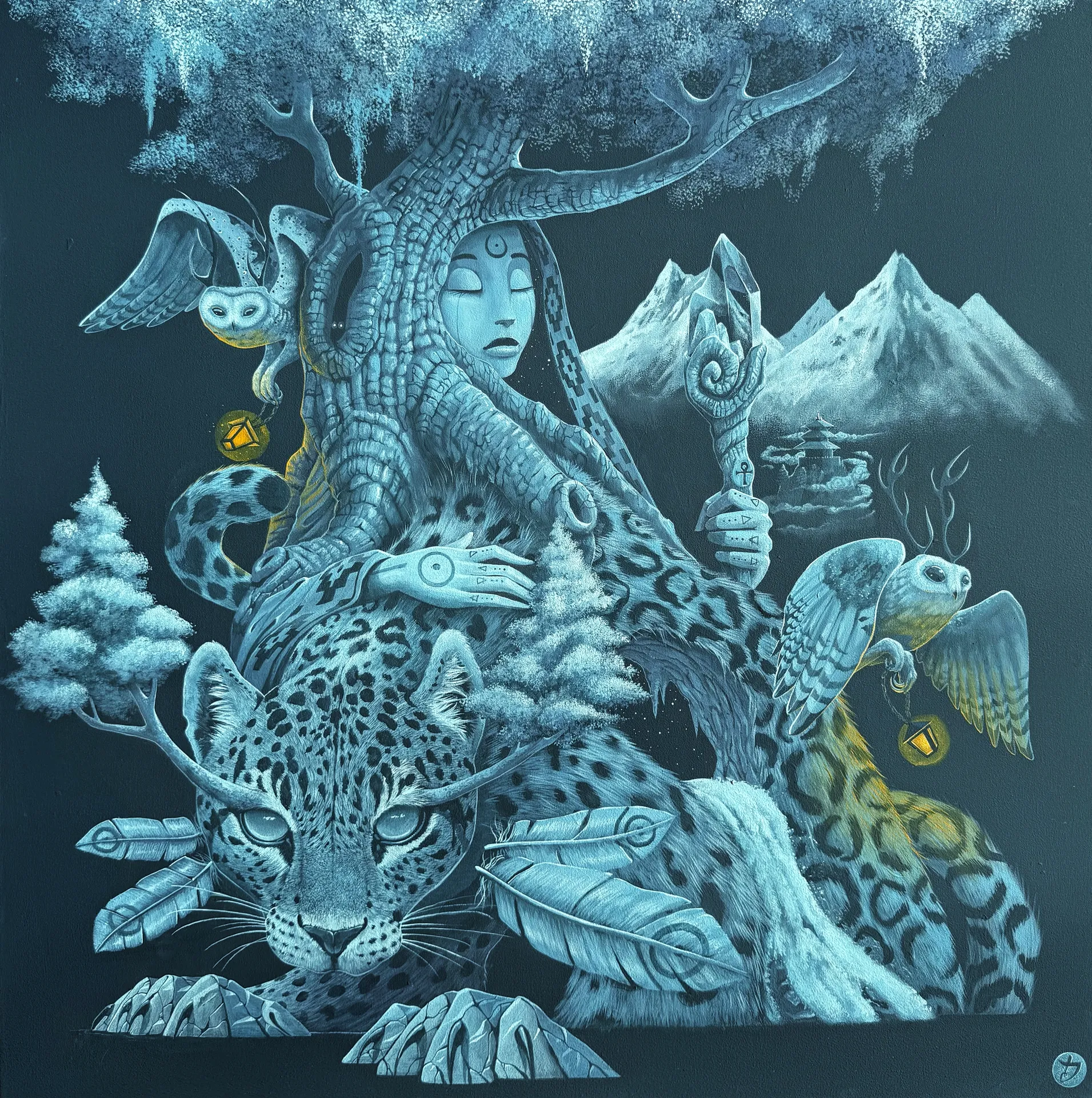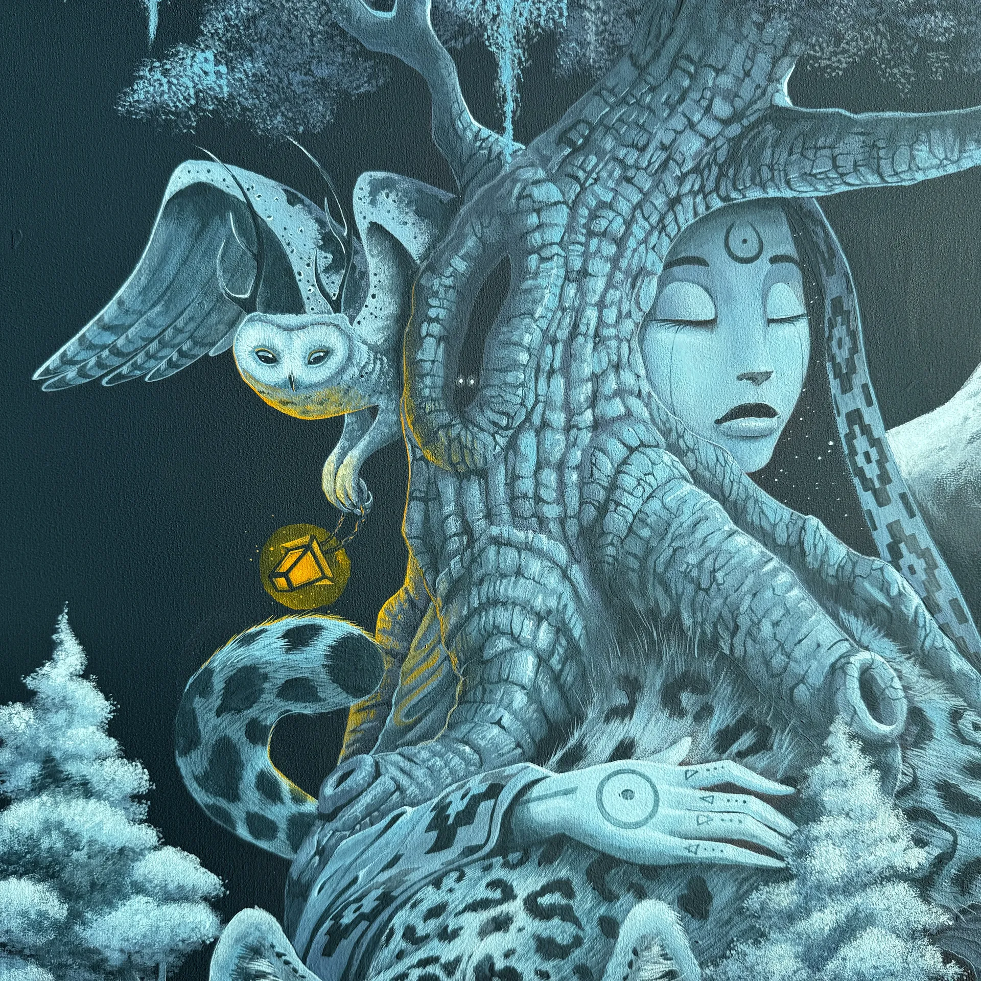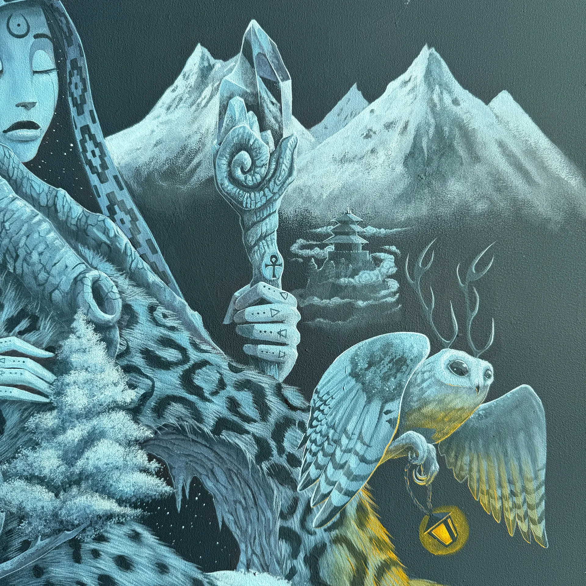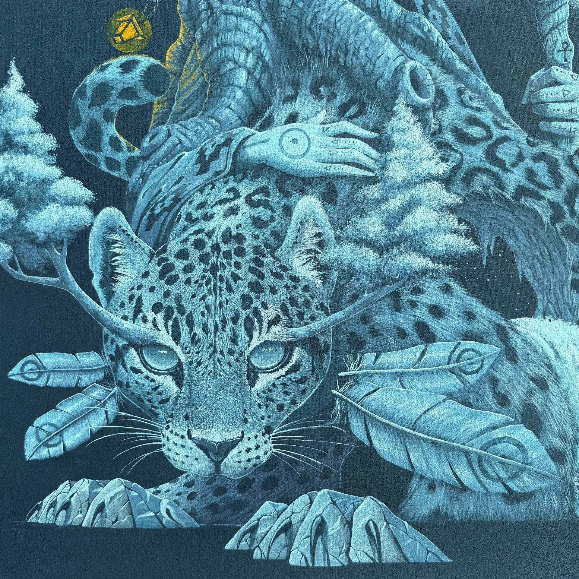Realizzato su commissione come ritratto d’anima, porta elementi legati al viaggio interiore alla scoperta delle proprie potenzialità. Tra animali mistici, simboli e paesaggi il committente può così realizzare un viaggio verso di se ogni qual volta ne fruisce con atteggiamento meditativo.